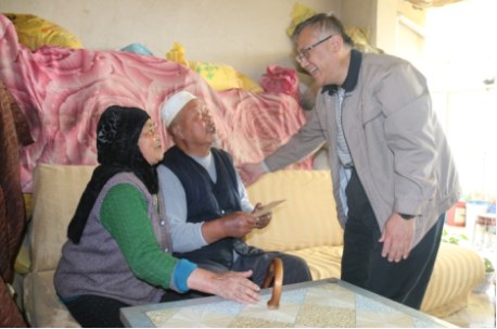王玉輝書記一行在大通縣石山鄉(xiāng)黨委副書記胡懷強(qiáng)、集團(tuán)派駐第一書記張秉瑜的陪同下,首先來到兩戶重點幫扶對象的家中進(jìn)行幫扶慰問。貧困戶馬得倉患慢性腎炎和高血壓,其妻馬尕奴子患多種慢性病,年老體衰,沒有勞動能力,生活十分困難。貧困戶宗統(tǒng)林患嚴(yán)重腰間盤突出疾病,兒子白血病去世,給貧困的家庭背負(fù)著20萬左右的債務(wù)。王玉輝書記對這兩戶因病致困特困戶的生活情況非常關(guān)注,詳細(xì)地詢問了他們的家庭基本情況和面臨的困難,了解了集團(tuán)駐村扶貧工作干部開展扶貧工作的情況。親切的話語貼近了與貧困群眾的心,貧困戶們握著他的手嘮著家常,愉快地說起了現(xiàn)在的生產(chǎn)生活情況和對未來生產(chǎn)生活的想法憧憬,所到之處時時傳來歡聲笑語。