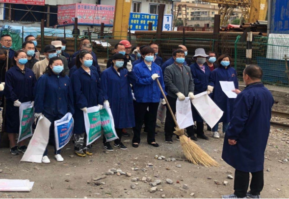 在三名黨支部書記的帶領(lǐng)下,黨員們分工明確、有條不紊,延鐵路專用線由南向北對積存垃圾、建筑垃圾、雜草進(jìn)行清除。活動中,黨員們充分發(fā)揚(yáng)不怕臟、不怕累的精神,有的掃地、有的撿拾垃圾、有的拔除雜草,呈現(xiàn)出一片熱火朝天的勞動景象。經(jīng)過一個(gè)多小時(shí)的勞動,鐵路專用線兩側(cè)垃圾得到徹底地清除。