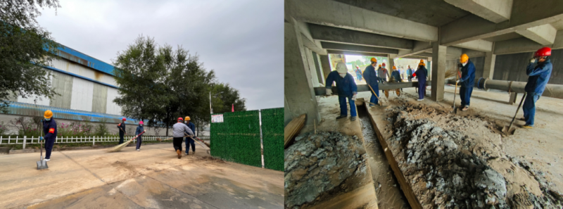 看著整潔的地面和自己身上滿是灰土的工作服,“先鋒隊(duì)”成員說道:“臟點(diǎn)累點(diǎn)我們都不怕,衣服臟了干完活再換就行,只要能為公司疫情防控和生產(chǎn)經(jīng)營出點(diǎn)力就好”。