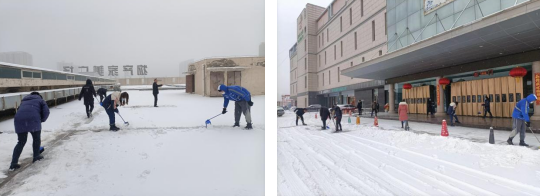(物產(chǎn)現(xiàn)代物流公司 訊 汪國敏/文攝)因近日連續(xù)性降雪,物產(chǎn)家美廣場周邊道路及商場屋面積雪嚴(yán)重,且由于持續(xù)低溫,已形成結(jié)冰,給商戶及周邊群眾通行帶來極大不便,屋面積雪消融引起房屋滲水存在安全隱患。2月13日一早,現(xiàn)代物流公司黨支部聯(lián)合團支部,組織“黨員先鋒隊”和“青年突擊隊”清除屋面及商場周邊積雪,贏得了職工群眾點贊。