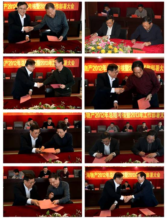 會上,由集團總經理王玉輝與所屬各公司、集團各部簽訂2013年經營業(yè)績目標責任書,由集團黨委書記白家林與所屬黨委(總支)、直屬黨支部簽訂黨建工作目標管理責任書、與所屬各公司法定代表人簽訂黨風廉政建設責任書。