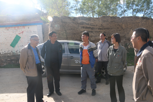 (圖為集團(tuán)公司調(diào)研組在湟源縣和平鄉(xiāng)草溝村與鄉(xiāng)黨委書記、村委書記交流扶貧攻堅(jiān)工作)