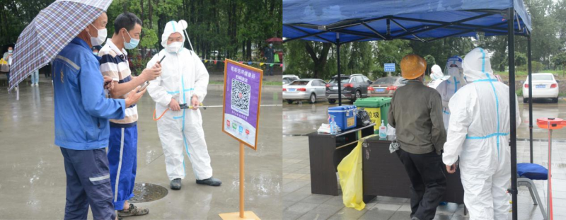 清晨,在綿綿細(xì)雨中園區(qū)新一輪區(qū)域核酸檢測(cè)有序推進(jìn),核酸檢測(cè)點(diǎn)搭起遮雨帳篷,公司廣大黨員干部奮勇?lián)?dāng)沖鋒在前,維護(hù)秩序、進(jìn)行掃碼,醫(yī)護(hù)人員快速有效地采集核酸。大家上下同心、通力配合,有序高效的進(jìn)行核酸檢測(cè),僅用了三個(gè)多小時(shí)就全面完成了園區(qū)人員核酸采樣工作。據(jù)統(tǒng)計(jì),本次核酸檢測(cè)共有1103名干部職工及外租單位人員參加,檢測(cè)結(jié)果全部為陰性。